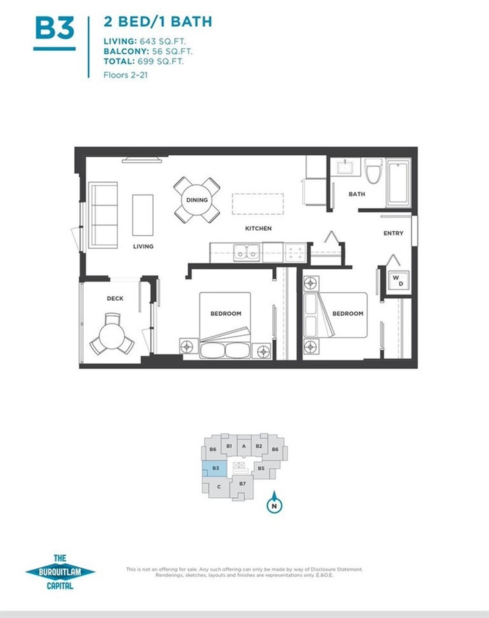At the heart of this growing city, just steps from the Burquitlam sky train station on the Evergreen line, there's a new community emerging. The Burquitlam Capital, a master planned 23-storey development that's right where you want to be. This well laid out 1 bedroom + den, west facing home is equipped with stainless steel appliances, laminate flooring, balcony, 1 parking stall and a storage locker. By appointment only.
