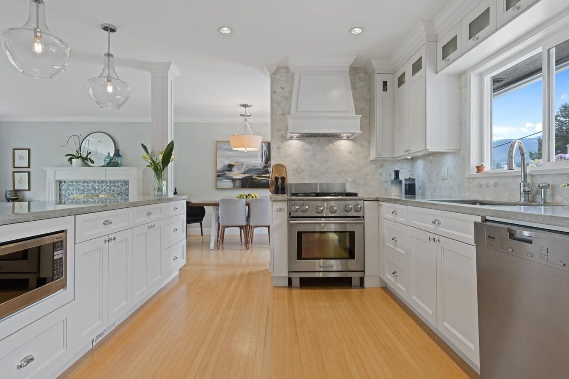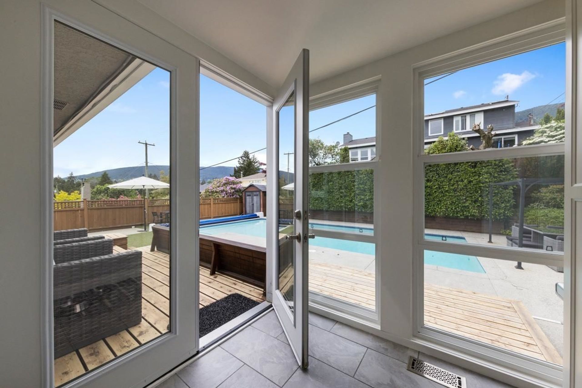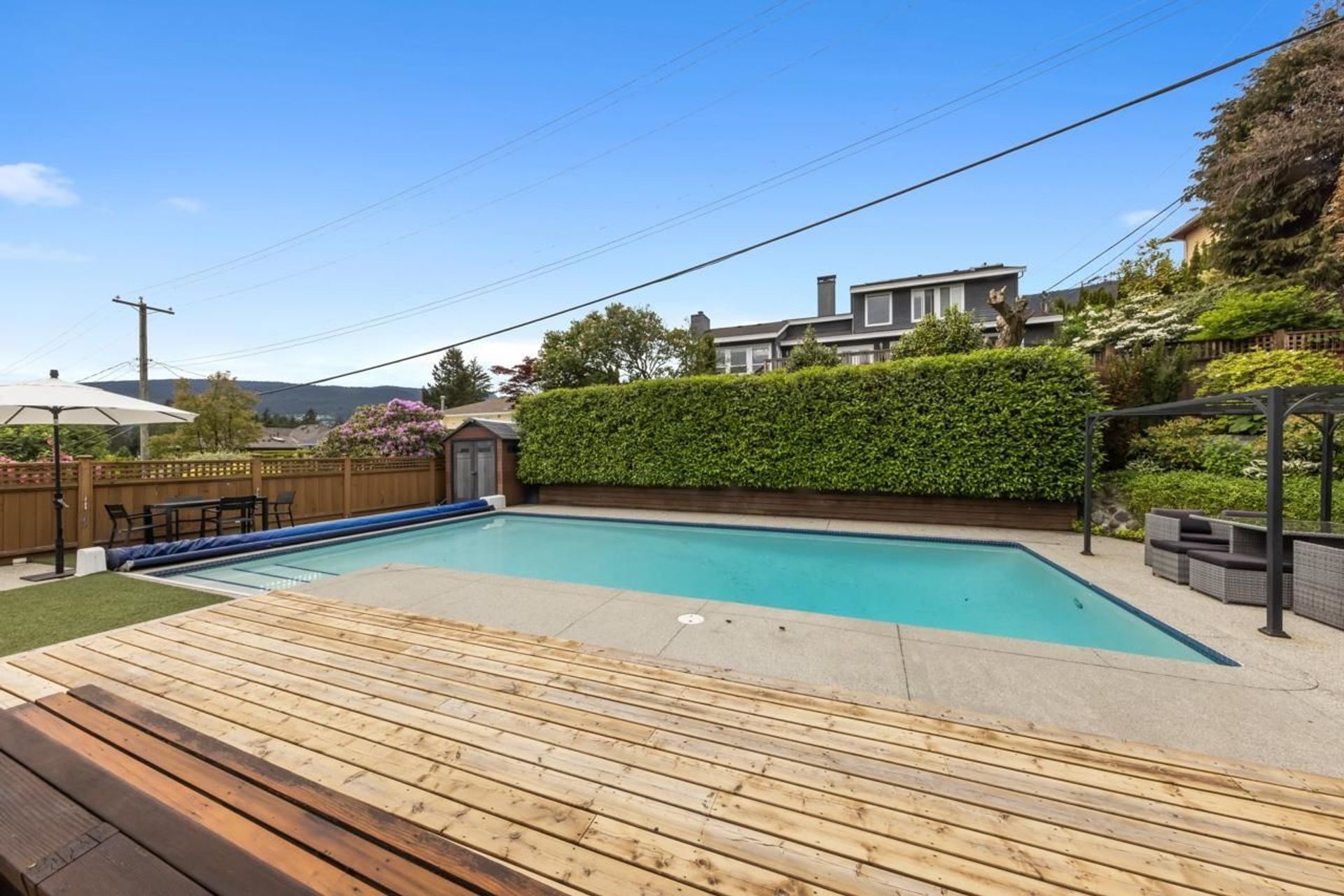 Just in time for summer, this entertainer’s dream home features a stunning, sun drenched, backyard oasis with a fantastic salt water pool. Situated in sought after Forest Hills, the home boasts over 2,600 square feet on 2 levels, 5 bedrooms and 2 bathrooms. The main floor offers open concept living, a renovated gourmet kitchen with bar seating, 3 bedrooms, gas fireplace and connects seamlessly through French doors to an incredible backyard. Downstairs are 2 additional bedrooms, rec room, media room, fantastic mud room, renovated bathroom and tons of storage. Sun drenched, 70’ x 115 lot with mountain views and in the Canyon Heights Elementary and Handsworth Secondary School catchments. EV charger and many additional updates. Welcome Home.