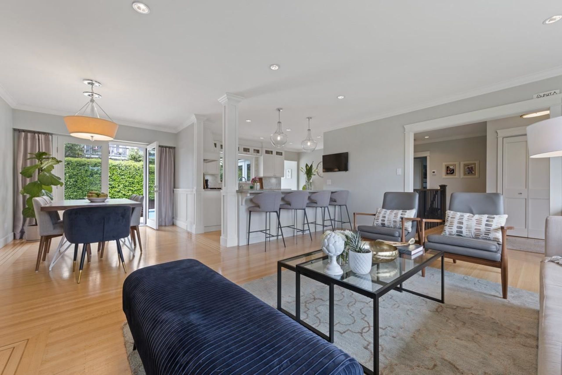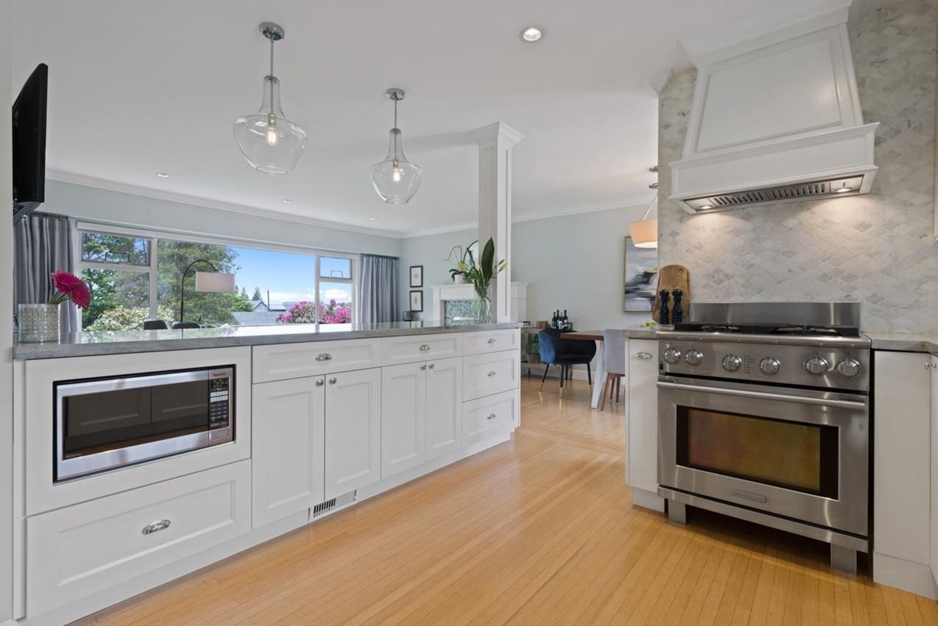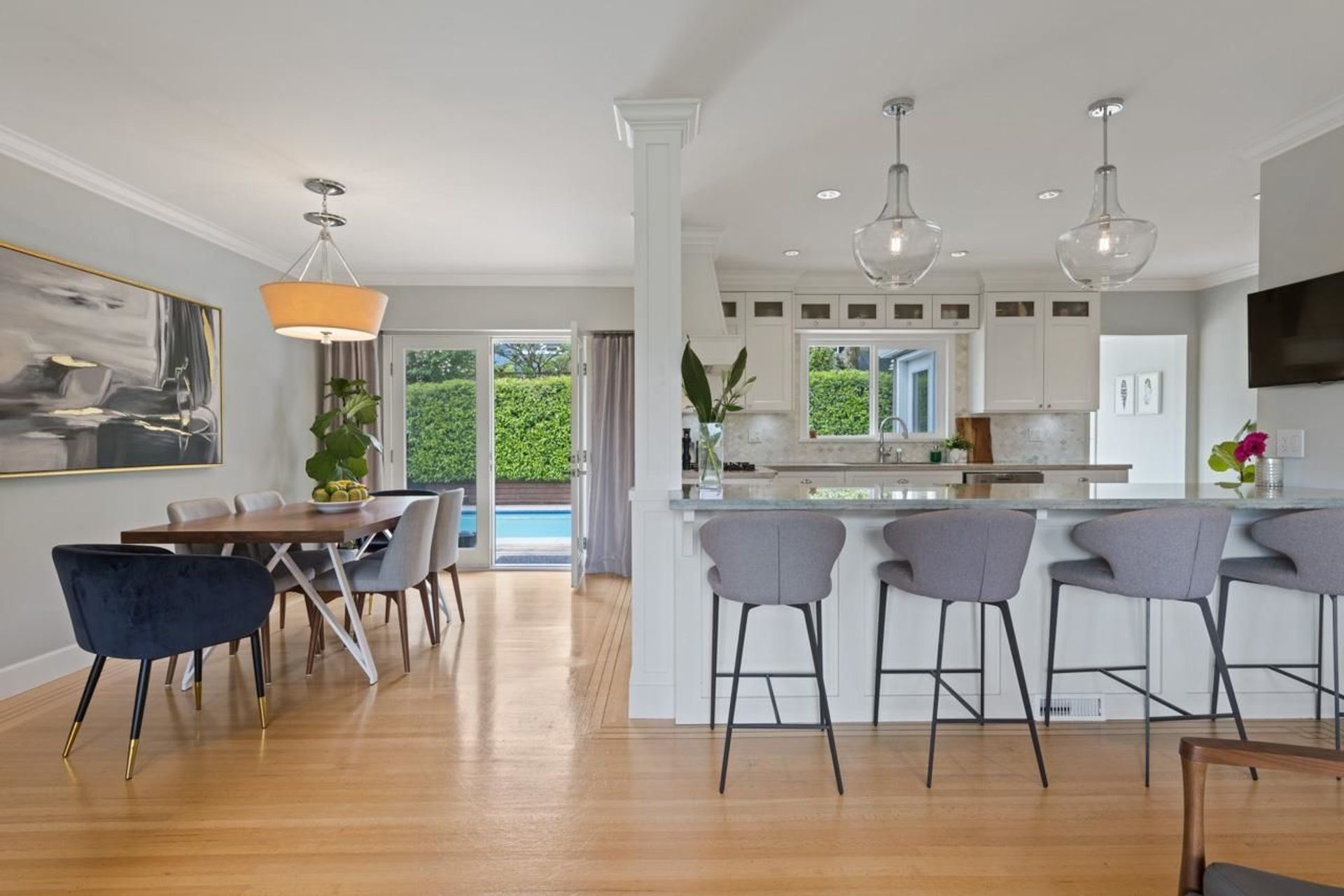 Just in time for summer, this entertainer’s dream home features a stunning, sun drenched, backyard oasis with a fantastic salt water pool. Situated in sought after Forest Hills, the home boasts over 2,600 square feet on 2 levels, 5 bedrooms and 2 bathrooms. The main floor offers open concept living, a renovated gourmet kitchen with bar seating, 3 bedrooms, gas fireplace and connects seamlessly through French doors to an incredible backyard. Downstairs are 2 additional bedrooms, rec room, media room, fantastic mud room, renovated bathroom and tons of storage. Sun drenched, 70’ x 115 lot with mountain views and in the Canyon Heights Elementary and Handsworth Secondary School catchments. EV charger and many additional updates. Welcome Home.